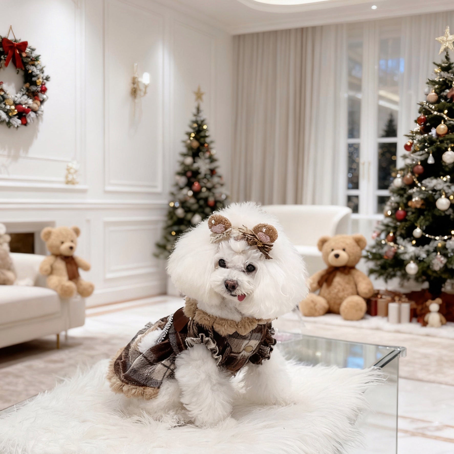 裹著咖啡棕格紋的軟絨,像裹進《Winter Wonderland》的暖調旋律!❄️