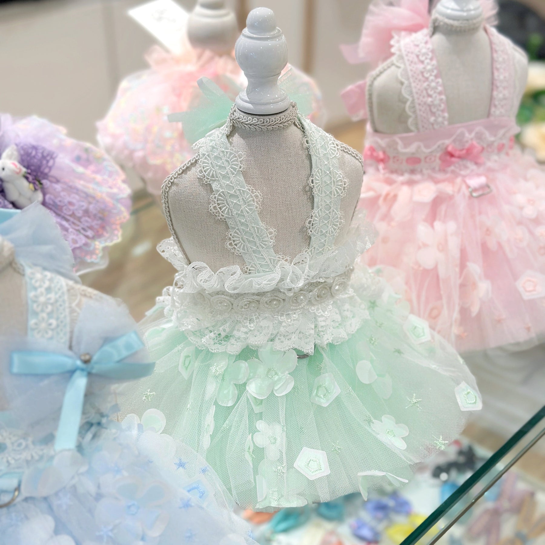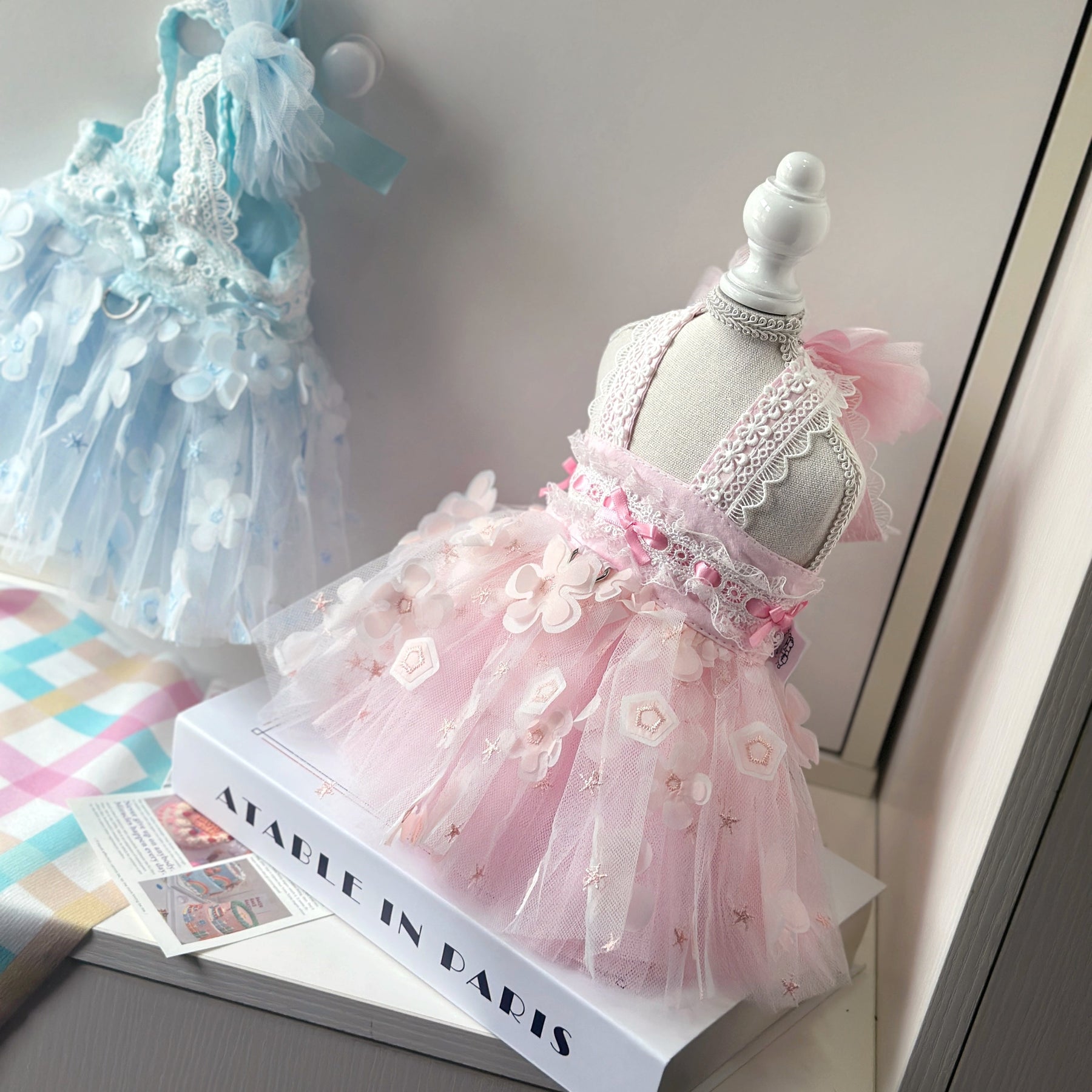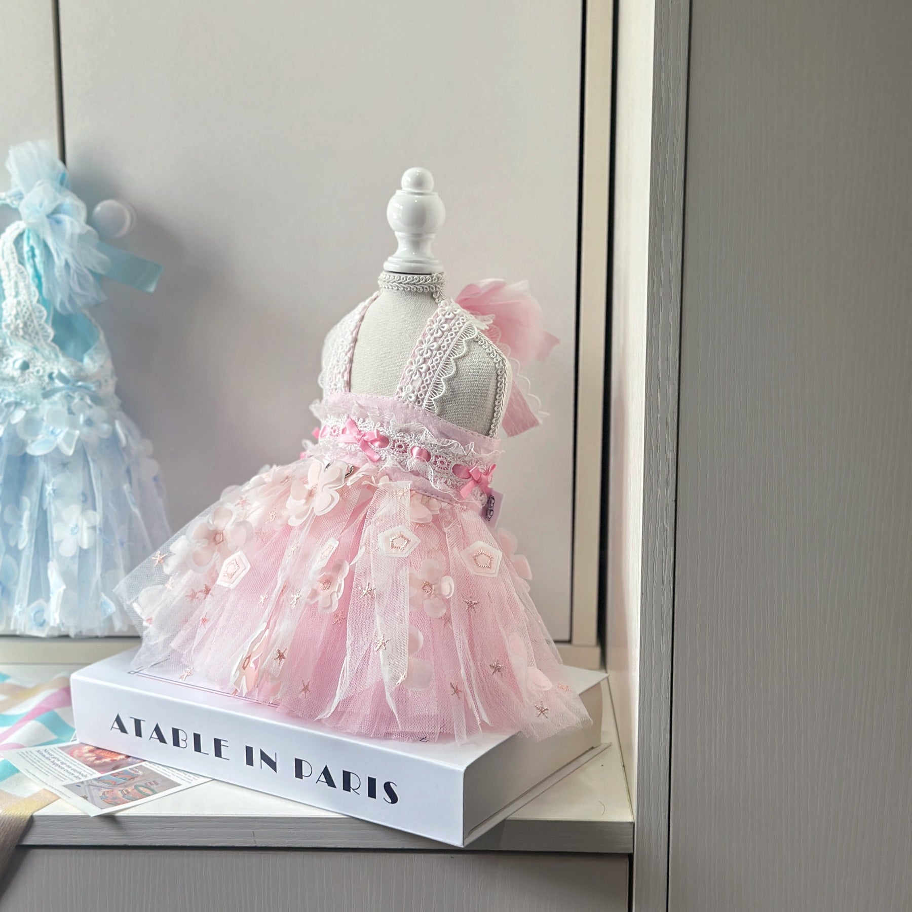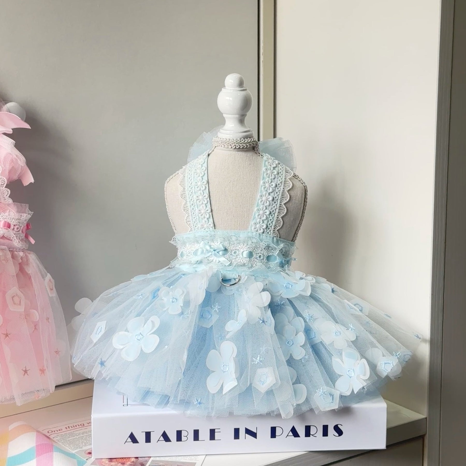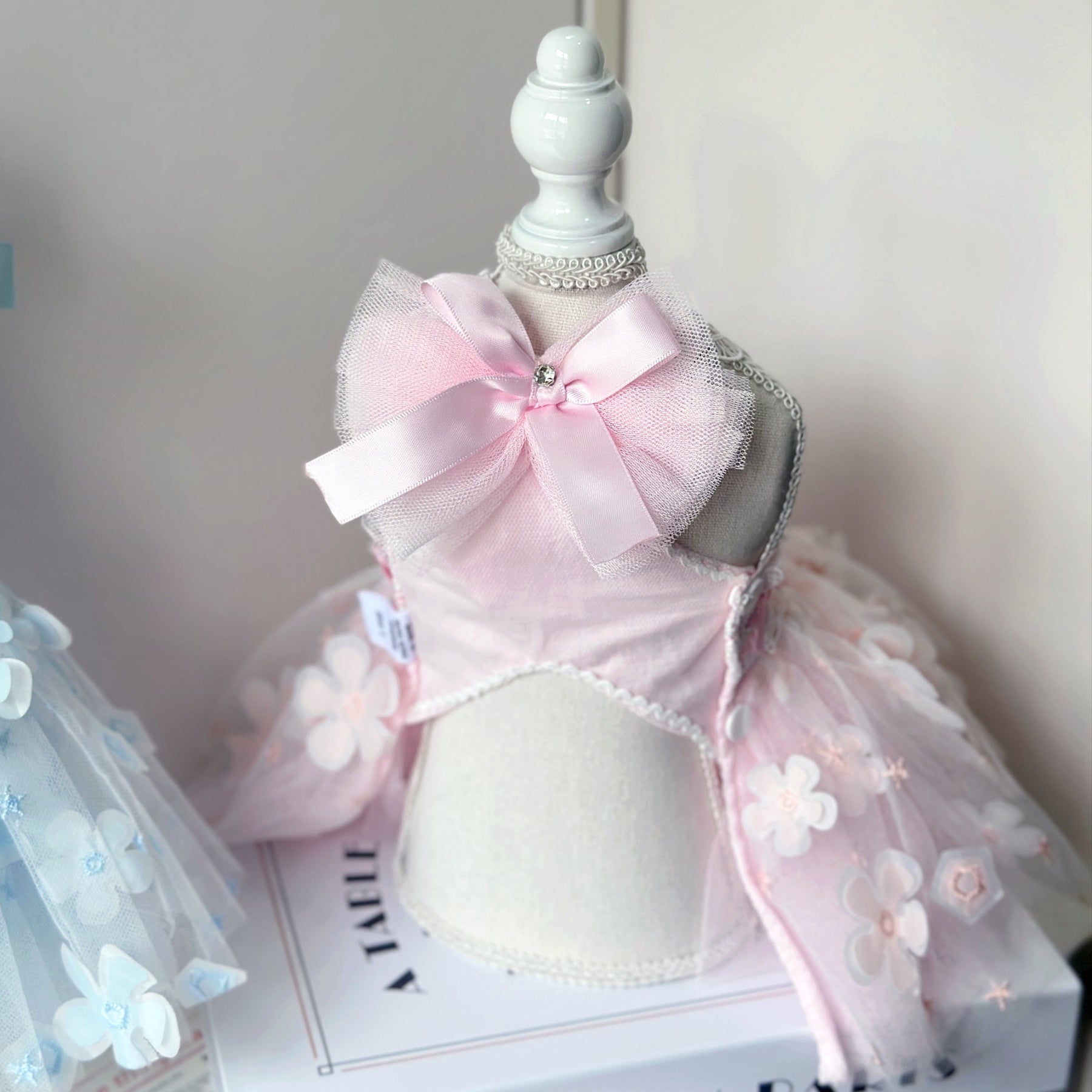 The whole dress is light and breathable, with no restraint for pets. There are also six layers of tulle stacked up, making the skirt fluffy and three - dimensional. When pets wear it, they are like little flower elves in fairy tales~